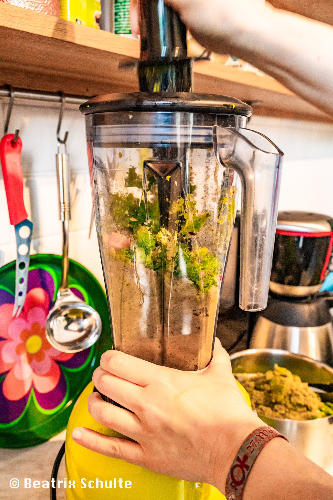 Vorheriges Bild Nächstes Bild Elektromixer für Gemüse Ein Mixer erleichtert das Zerkleinern der grob geschnittenen Gemüsestücke. Ein Küchengerät hilft beim Zerkleinern des Gemüses
