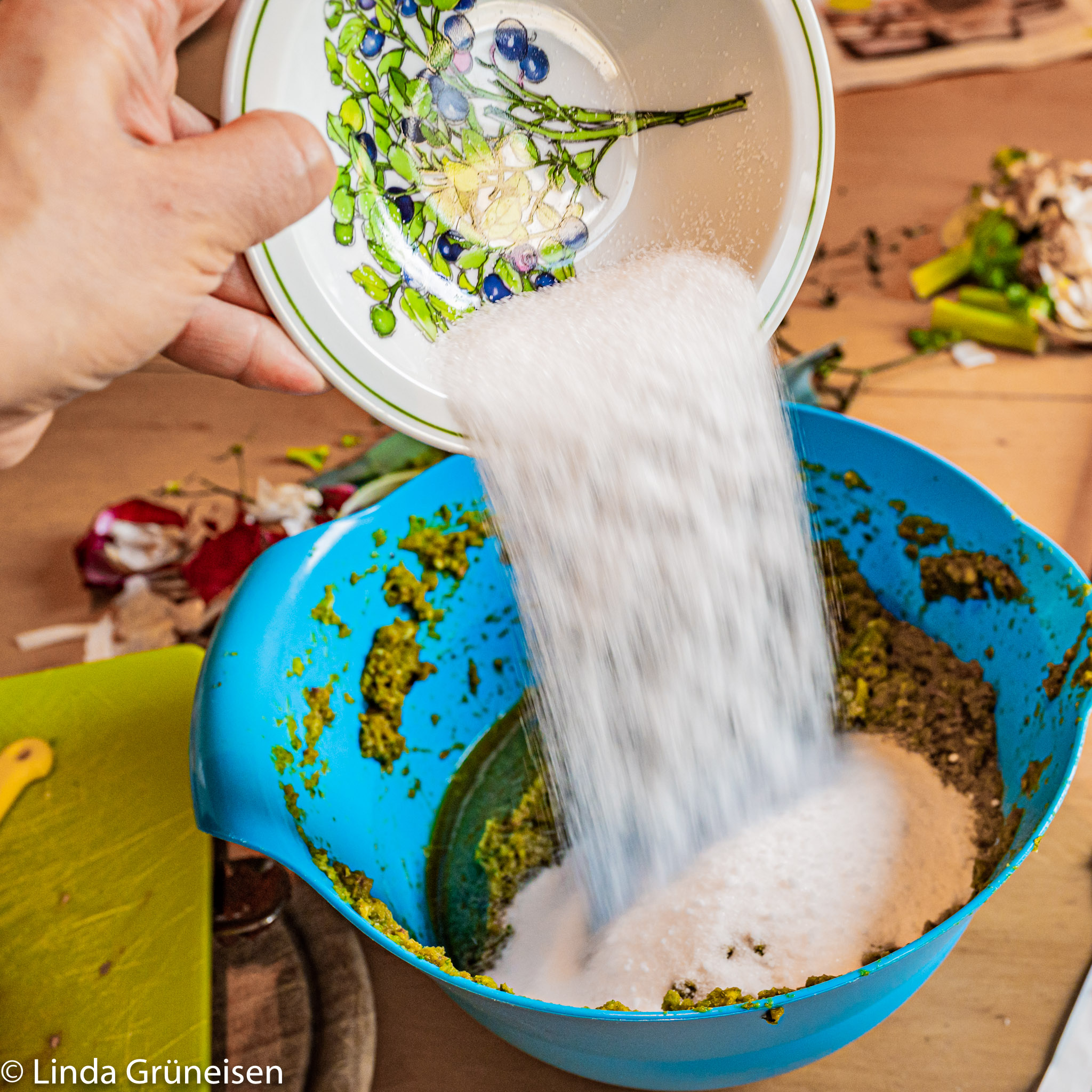 Vorheriges Bild Nächstes Bild Salzzugabe Ohne Salzzugabe im bestimmten Mischungsverhältnis wird die Gemüsepaste nicht haltbar. Salz sorgt für die nötige Haltbarkeit der DIY-Gemüsepaste.