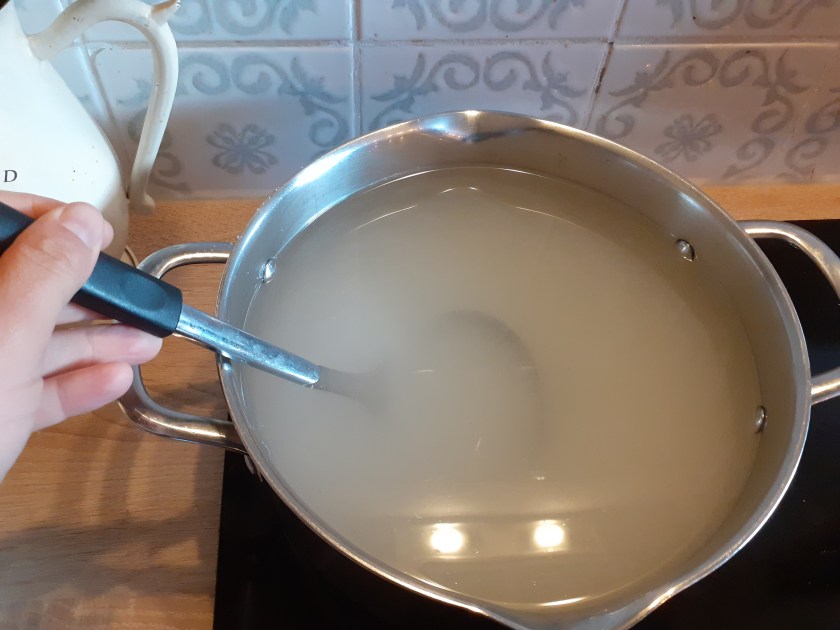 Währenddessen Flaschen mit Schraubverschluss oder auch Einmachgläser vorbereiten. Ich spüle diese immer nochmal heiß aus, um sicherzugehen, dass sie auch wirklich sauber sind.