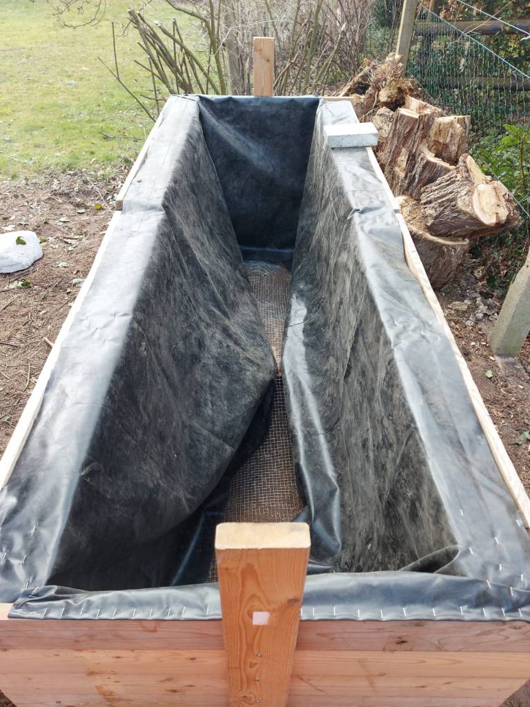 Auch bei Wühlmausgitter und Folie (wenn gewünscht) sollte man im Zweifel lieber die kleineren Maschen bzw. die dickere Folie nehmen, denn Tiere lieben Hochbeete ebenso wie wir, da sie Wärme speichern.